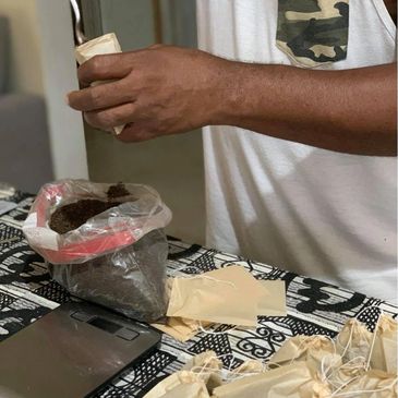 I have been under his care for over ten years and cannot complain about my health or old age. I drink medina, neem, soursop, jack in the bush, king of the forest, rice, and peas (Jamaicans name everything something), and recently I was introduced to guinea hen. He is passionate about his roots, literally. I come to Jamaica for healing and rejuvenation. Every trip I come to see him, he sends me home with roots and tells me what to do with them. This year, I took him seriously because of COVID, and I started boiling tea to build my immune system. I wished I had these roots in tea bags instead of boiling them and then straining for tea. So, I brought empty tea bags and asked him to please make me tea bags to put in a cup of boiling water….and Walla! he turned roots from the ground into tea bags. He has labored hard to (I watched him) turn roots into tea bags. What brings tears to my eyes is he is so proud of the process. He handpicks, dries, grinds, and bag tea bags for me and from his yard. We are taking one step forward to share our Yard Bush with you.
